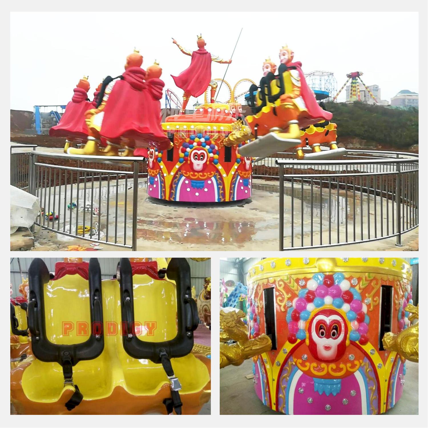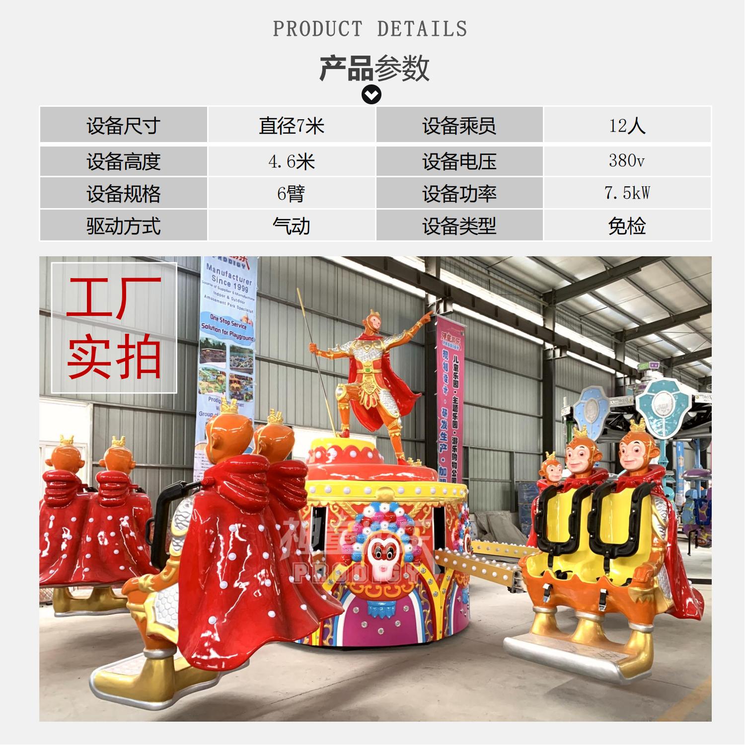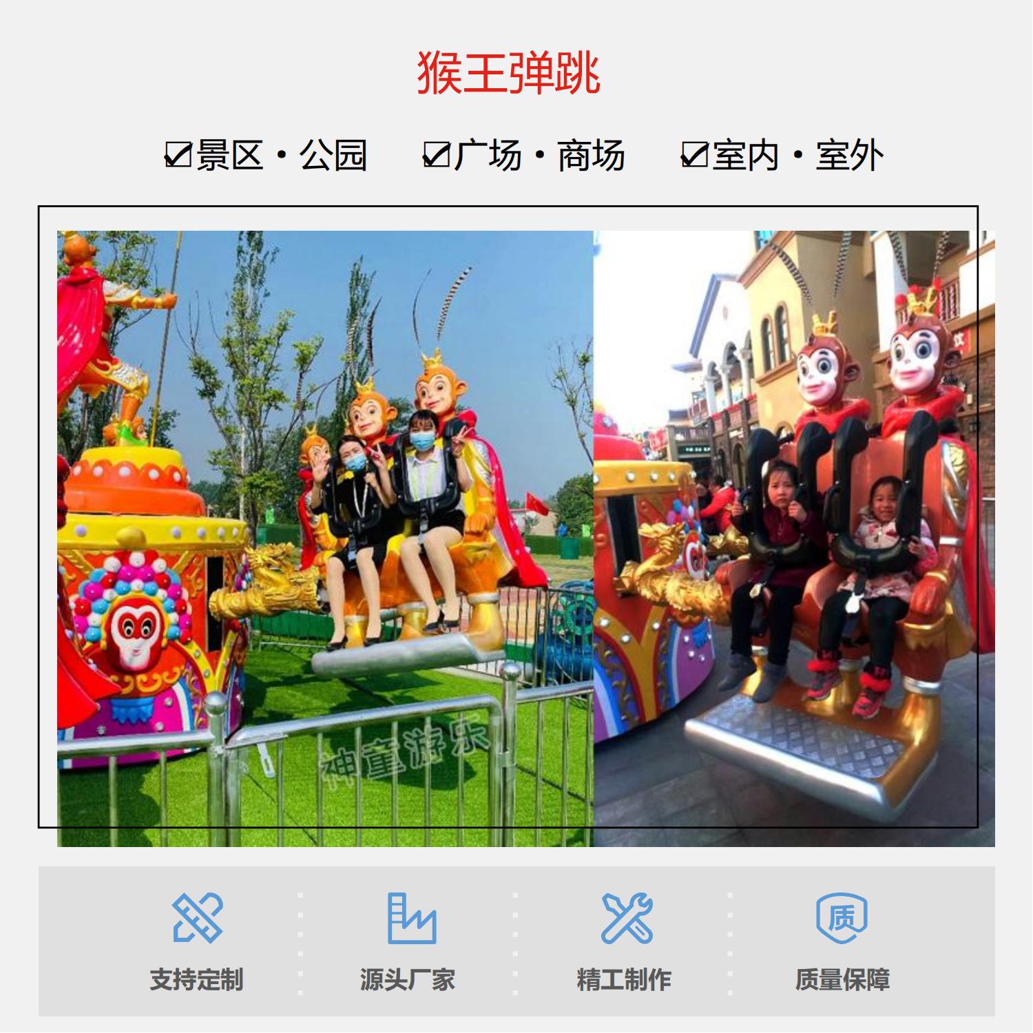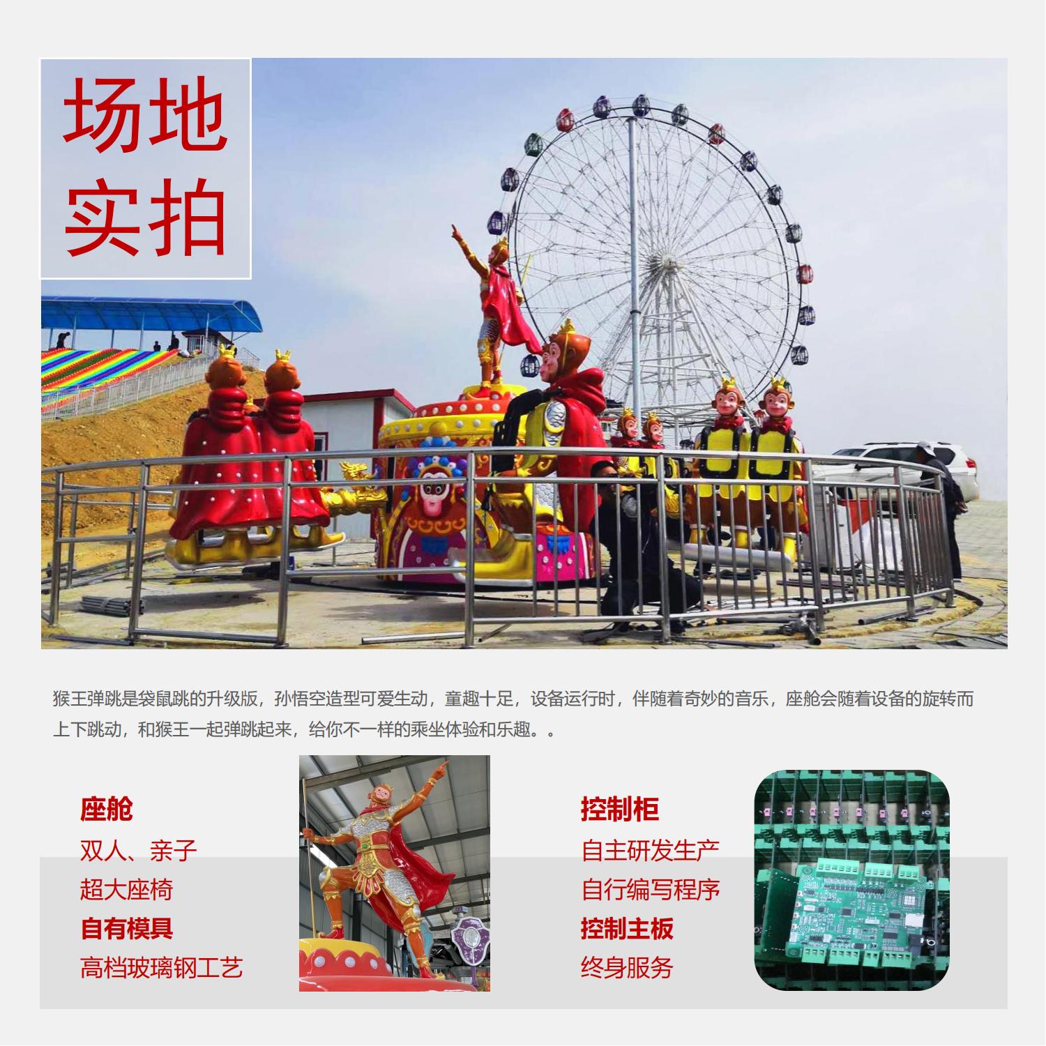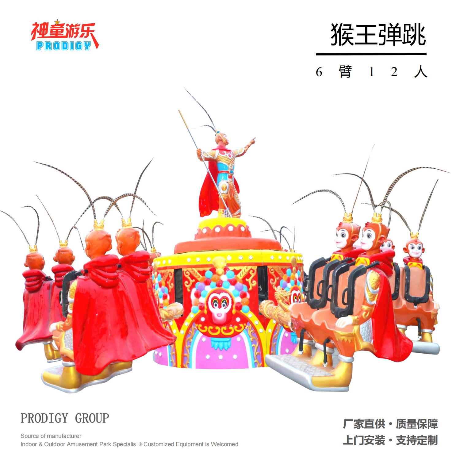 猴王彈跳是袋鼠跳的升級版,孫悟空造型可愛生動,童趣十足,設(shè)備運(yùn)行時,伴隨著奇妙的音樂,座艙會隨著設(shè)備的旋轉(zhuǎn)而上下跳動,和猴王一起彈跳起來,給你不一樣的乘坐體驗(yàn)和樂趣。